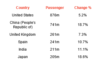 Birleşik Krallık 261 milyon yolcuyla üçüncü olurken, İspanya’da 241 milyon yolcu ağırlandı.