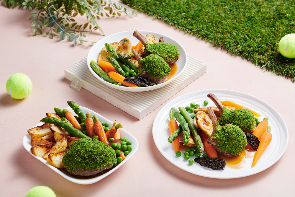 First ve Business Class yolcuları, lezzetli panko kaplı kuzu pirzolaları ve çilek kompostosuyla ballı kek, el yapımı hamur işleri ve şampiyonalar logosuyla süslenmiş limonlu çilekli kekler gibi lezzetli tatlılar içeren özel menülerin tadını çıkaracaklar.