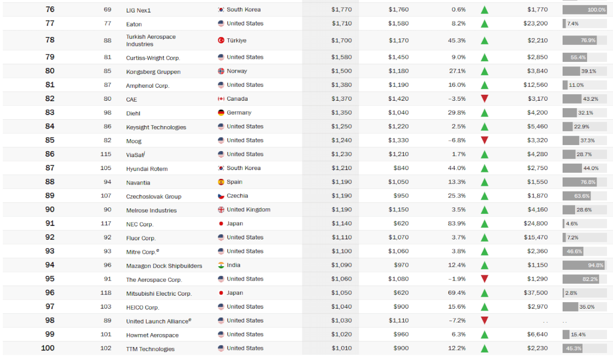 Dünyanın En Büyük 100 Savunma ve Havacılık Şirketi