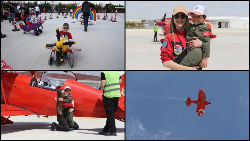 Etkinlikte, bazı çocuklar helikopter ve uçaklarla deneyimli pilotlar eşliğinde uçuş heyecanını yaşadı.