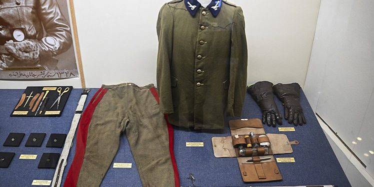 Müzede, ilk hava şehitleri olan yüzbaşılar Fethi, Sadık ve Nuri beylerin vefatları sırasında üzerlerinde bulunan giysiler ile Fethi Bey’in altın madalya ve beratı da sergileniyor.