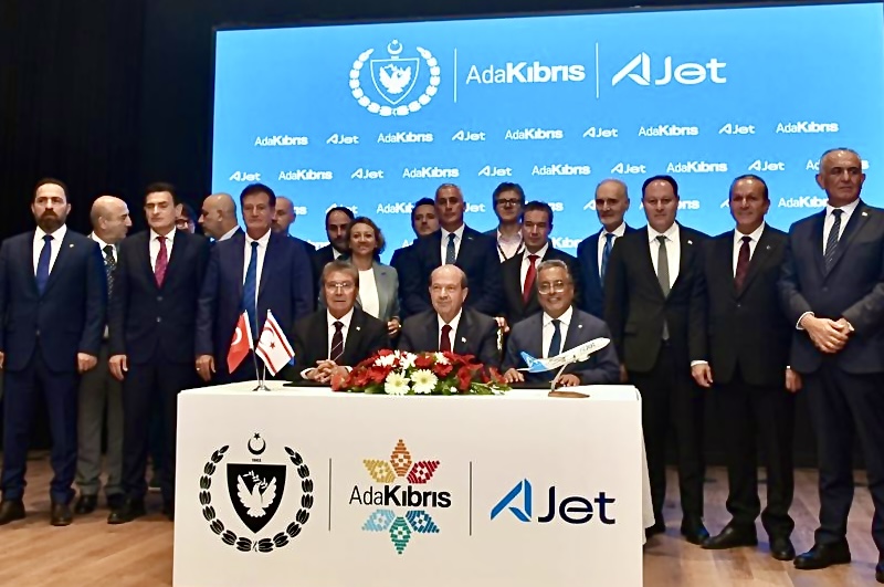 Kuzey Kıbrıs Türk Cumhuriyeti (KKTC), Türk Hava Yolları (THY) ve AJet arasında “Ada Kıbrıs” projesi kapsamında bilet ücretlerinin düşürülmesi ve yeni uçuş düzenlemelerini içeren iş birliği protokolü imzalandı. Protokol uyarınca, AJet’in Türkiye-KKTC seferleri 6 bin TL’yi aşmayacak fiyatlarla gerçekleştirilecek ve Türkiye’nin büyük şehirlerine düzenli uçuşlar yapılacak. Proje kapsamında Londra (Stansted)–Ercan arasında gidiş-dönüş bilet fiyatı 250 euro olacak.