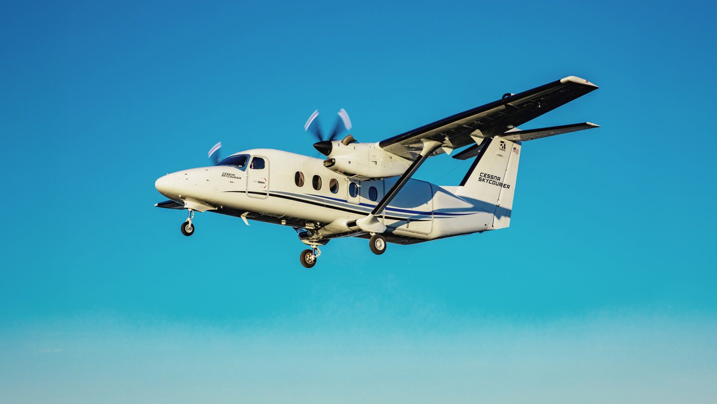 Cessna SkyCourier çift motorlu, yüksek kanatlı turboprop uçağı, hava kargo, banliyö ve özel görev operatörleri için performans ve düşük işletme maliyetlerini bir arada sunuyor. Kargo uçağı versiyonu, etkileyici 2 bin 700 kg’lık yük kapasitesiyle üç adede kadar LD3 nakliye konteynerini taşıyabilecek boyutta.