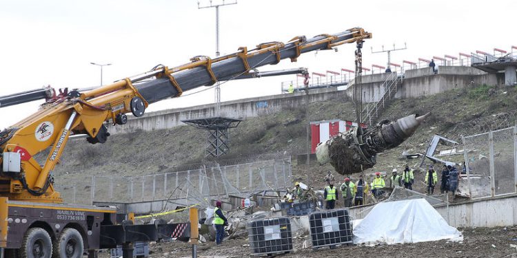 Enkaz alanındaki Kaza Araştırma ve İnceleme Kurulu (KAİK) ekipleri, vinç yardımıyla uçağı parçalara ayırdı. Ekipler, çalışmanın dördüncü gününde vinç yardımıyla uçağın gövde ve kuyruk kısmını birbirinden ayırdı.