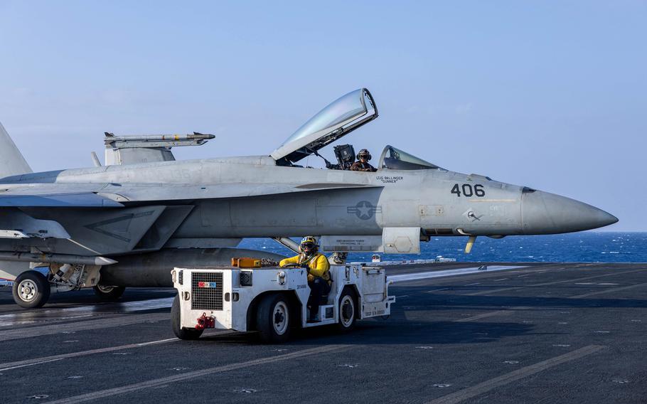 ABD’ye ait bir FA-18E Super Hornet tipi savaş uçağının, uçak gemisinin hangar bölümüne çekilirken kontrolden çıkarak denize düştüğü bildirildi.