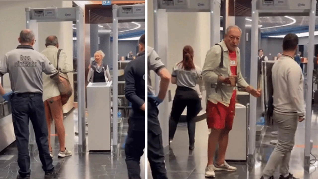 Sosyal medyada yayılan videoda, Reha Muhtar’ın elinde telefonu varken X-ray cihazından geçmek istediği, görevlilerin uyarısı üzerine kısa süreli bir tartışma yaşandığı görüldü.