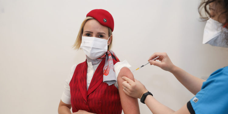 Bayrak taşıyıcı havayolunun pilot, kabin memuru ve load master (yükleme uzmanları) çalışanları öncelikli meslek gurubu kapsamında Kovid-19 aşılarını olmaya başladı.