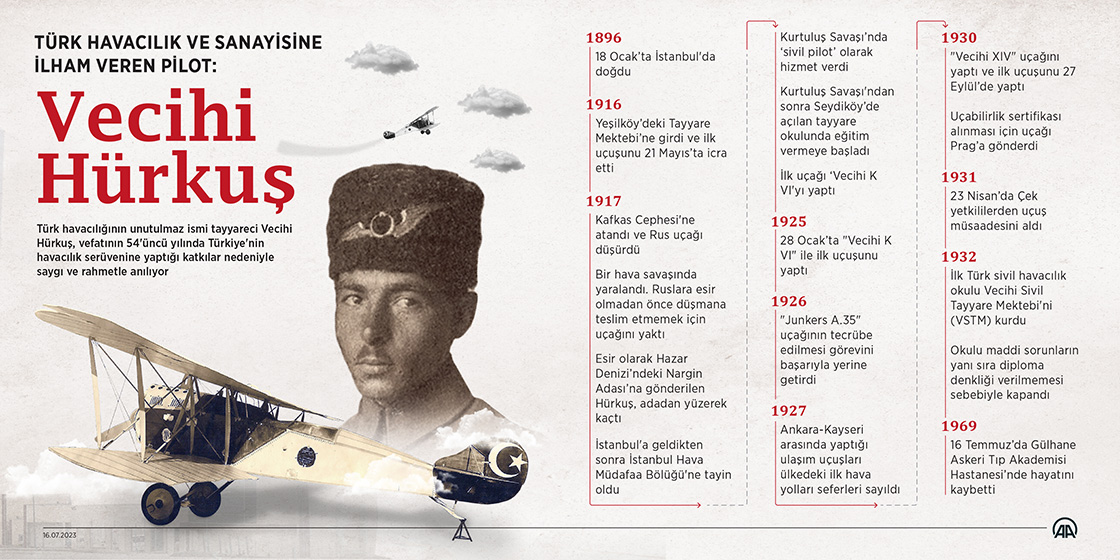 Uçak tasarımı üzerine yoğunlaşan Hürkuş, savaşta Yunanlılardan kalan uçak malzemelerinden yararlanarak Türkiye’nin ilk yerli uçağı “Vecihi K-VI”yı 1924’te üretti.