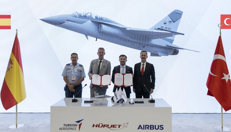Türk Havacılık ve Uzay Sanayii (TUSAŞ) ile Avrupa’nın önde gelen havacılık şirketlerinden Airbus arasında HÜRJET Jet Eğitim Uçağı’nın İspanya’ya ihracatını hızlandıracak önemli bir iş ortaklığı anlaşmasına imza atıldı. 17’ncisi düzenlenen Uluslararası Savunma Sanayi Fuarı’nda (IDEF) gerçekleştirilen anlaşma, iki şirketin HÜRJET projesindeki rollerini netleştirerek İspanya’nın jet eğitim uçağı tedarik sürecinde TUSAŞ ve Airbus’ın ortaklığını resmileştirdi.