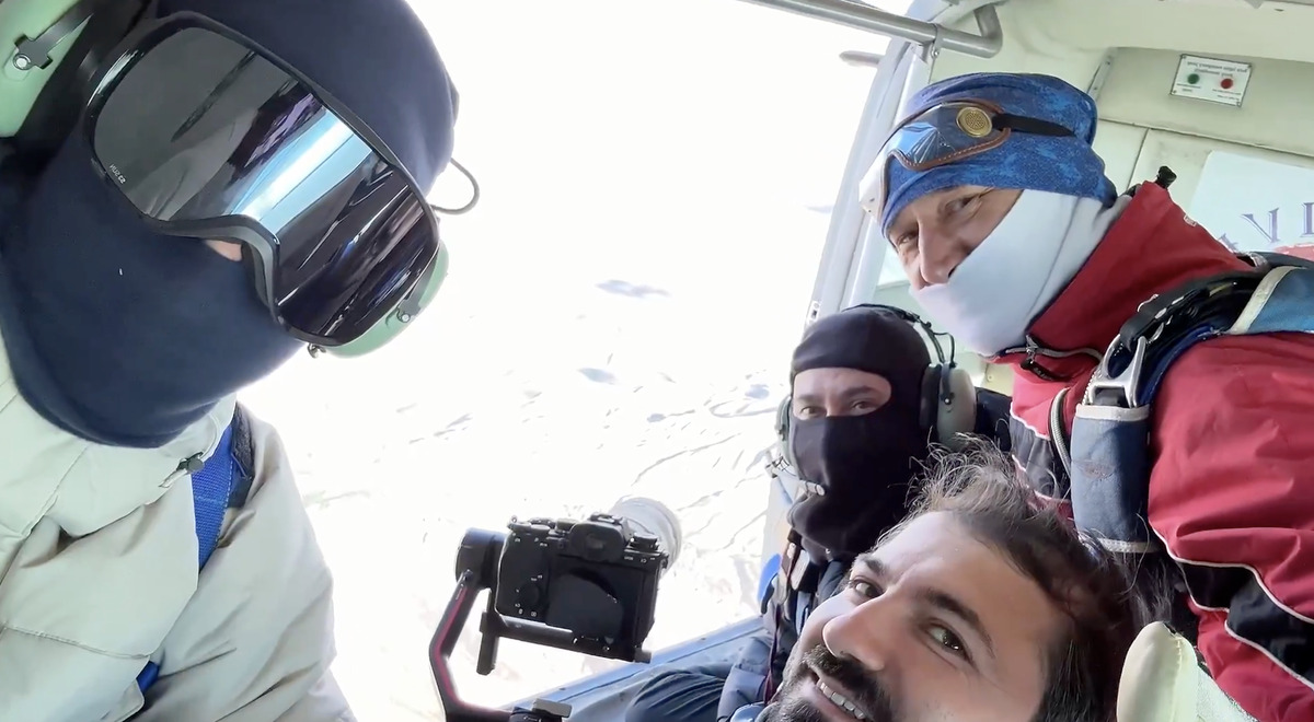 Paylaşılan kayıtlarda, 12 bin feet yükselikteki medya ekibinin bir uçağın açık kapısından, dondurucu rüzgarlara ve yüksek irtifadaki zorlu fiziksel koşullara aldırış etmeden nasıl çalıştığı görülüyor.