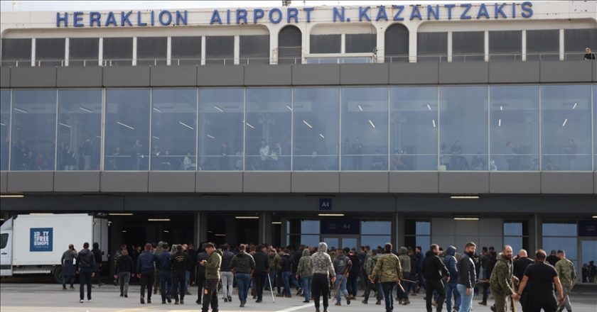 Yunanistan’ın Girit Adası’nda protestocuların Kandiye Nikos Kazancakis Havalimanı’nın pist alanına girmesi üzerine hava trafiği tamamen durduruldu.