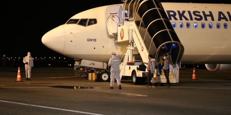 Cibuti’de mahsur kalan 3 Yunan denizci, Türkiye’nin Cibuti Büyükelçiliği’nin yardımıyla Türk Hava Yollarına ait tahliye uçağıyla Türkiye’ye getirildi.