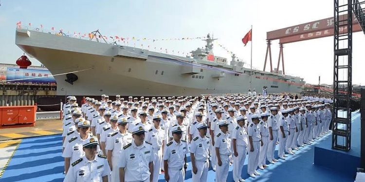 Çin’in ilk helikopter gemisi Çin’in Şanghay kentinde bu sabah Çin Deniz Kuvvetleri tarafından düzenlenen törenle ülkenin ulusal marşı eşliğinde suya indirildi.