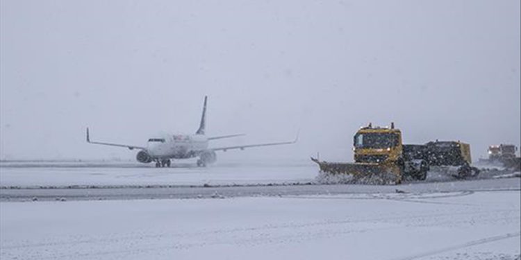 Esenboğa Havalimanı’nda kar yağışında uçuşların aksamaması için gerekli tedbirler alındı.