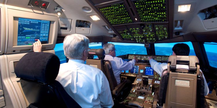 Boeing 777 uçuş simülatöründe pilot eğitimi. Fotoğraf: Boeing