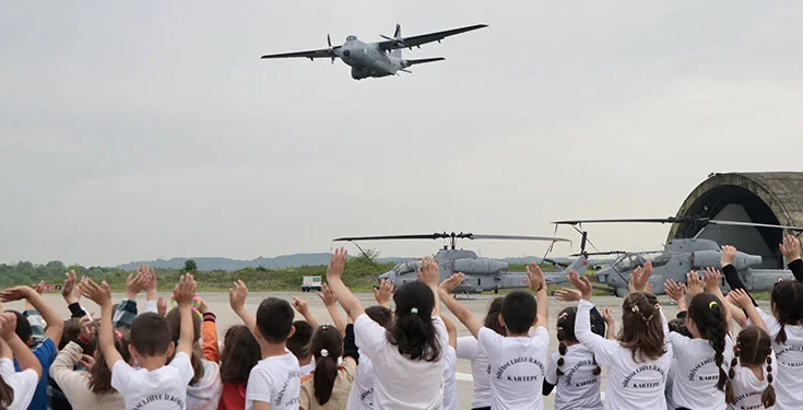 Seahawk ve Süper Kobra helikopterleri ile deniz karakol uçakları, çocuklar için gösteri uçuşu gerçekleştirdi.
