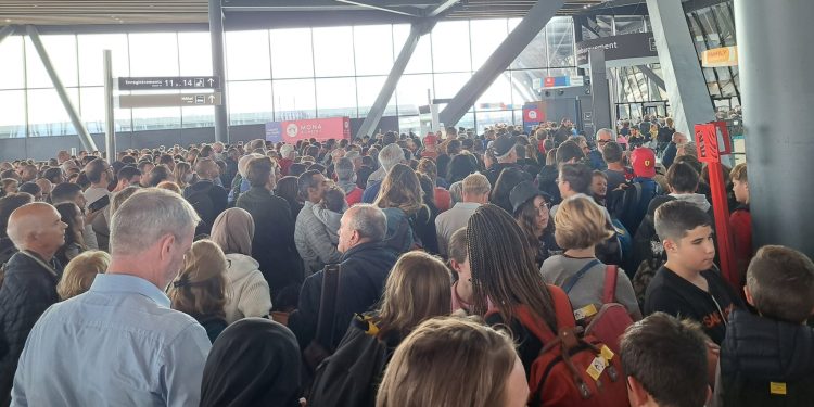 Yolculardan oluşan kalabalığın havalimanında beklediği anların fotoğrafları sosyal medyada paylaşıldı.