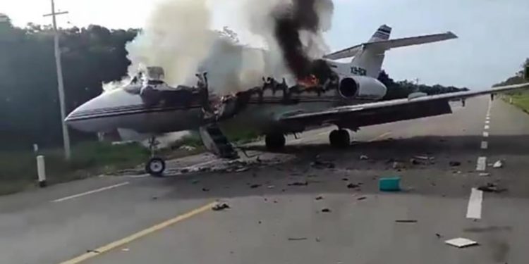 Meksika’nın Quintana Roo eyaletinde, uyuşturucu taşıdığından şüphelenilen iş jetinin otoyola iniş yaptığı ve alev aldığı bildirildi.