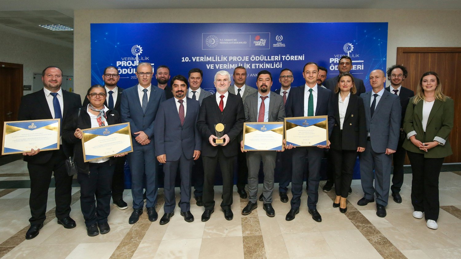 Kamu ve özel sektör kurumlarını verimlilik temelli proje geliştirmeye teşvik etmek, başarılı uygulamaların tanıtımını yapmak, bilgi ve tecrübe paylaşımını artırmak amacıyla her yıl düzenlenen programda TEI Genel Müdürü Prof. Dr. Mahmut F. Akşit, “Operasyonel Mükemmellik ve Yalın İmalat Projesi”ile kazandıkları Savunma Sanayi Kategorisi birincilik ödülünü Sanayi ve Teknoloji Bakanı Mehmet Fatih Kacır’dan aldı.