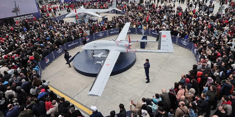 Bayraktar TB3 çevresinde yoğunluk oluşturan vatandaşlar, yaptıkları açıklamalarda hava aracını çok beğendiklerini ve bu SİHA’nın Türkiye’ye savunma sanayisinde önemli katkılar sağlayacağını söyledi. (AA)