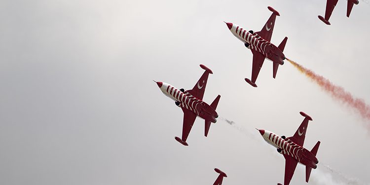 Türk Hava Kuvvetleri akrobasi timi SOLOTÜRK ile Türk Yıldızları, Türkiye’nin ev sahipliğinde düzenlenen, gerçek mühimmatın kullanıldığı “Uluslararası Anadolu Ankası Tatbikatı”nın ardından gösteri uçuşu yaptı.