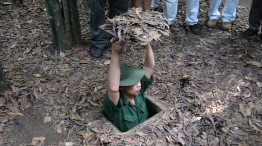 Saygon’a 35 km uzaklıktaki bu tüneller, ilk olarak 1940’larda Fransızlara karşı yapılan mücadele esnasında açılmaya başlanmış. 250 kilometrekareye yayılan bu tüneller üç katmanlıymış. En derin noktalarında 10 metreye kadar iniyormuş. İçerisinde barınaklar, hastaneler, mutfaklar, cephanelikler, komuta merkezleri ve tünellere girmeye çalışacak olan ABD askerleri ve köpeklere karşı tuzaklar varmış. Ormanlık bir alanda yapılan bu tünellerin üstünde bir Amerikan üssü bile varmış, ama altlarında ne olduğunu hiç bir zaman öğrenememişler. Viet Kong gerillaları iyi kamufle edilmiş çıkış noktalarından dışarı çıkarak ABD askerlerine önemli kayıplar verdirir sonra yine toprağın altında kaybolurlarmış.