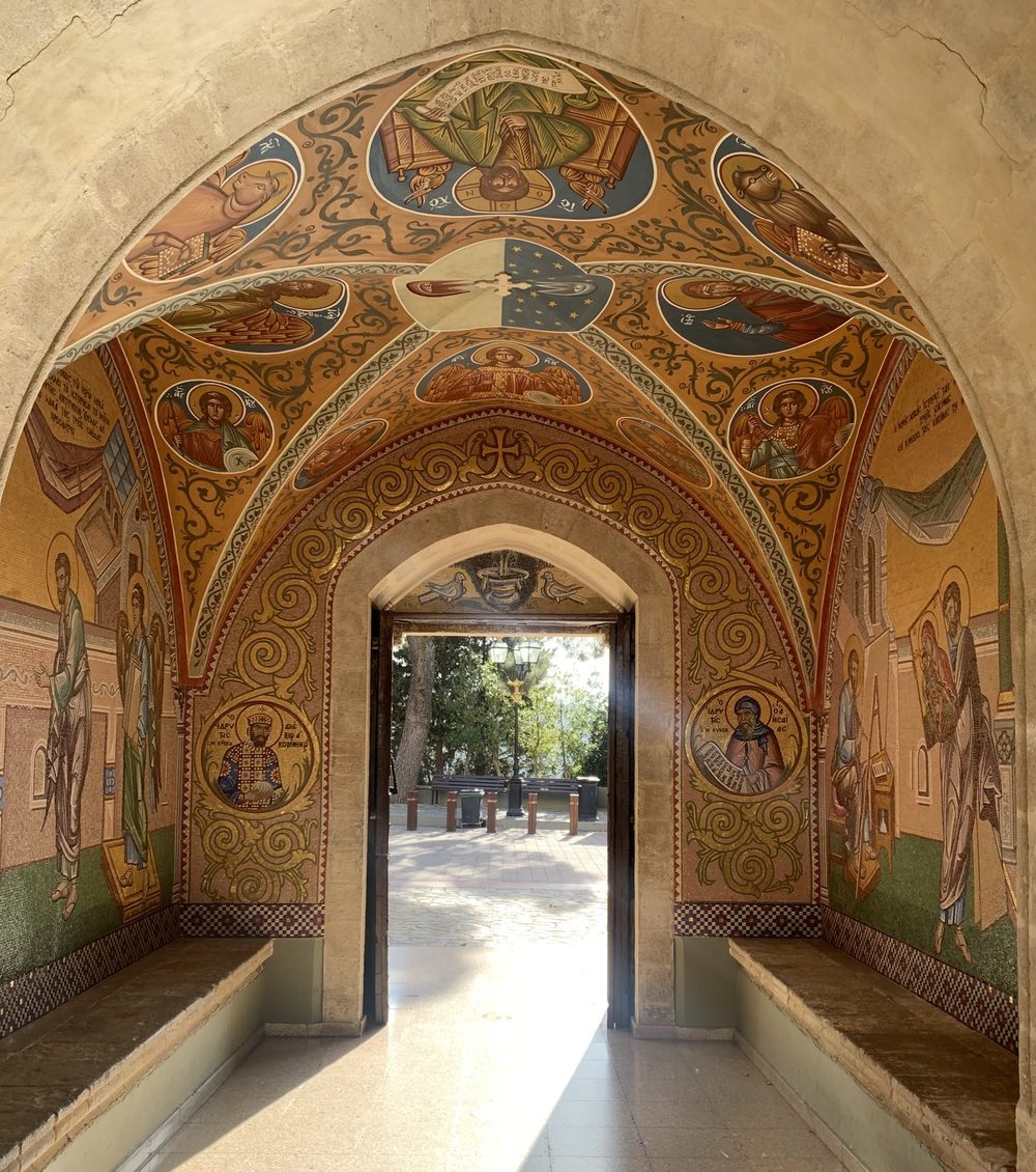 Manastırın duvarlarındaki mozaikten yapılmış havari resimleri son derece etkileyici ve bakımlıydı. Bir anlamda manastırın zenginliğinin de dışa vurumu idi.