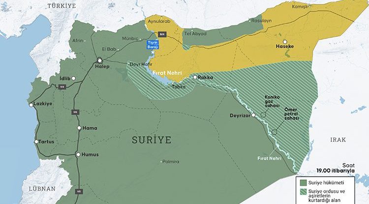 Aşiretler ve yerel halkın Deyrizor ve Rakka’da ayaklanarak kent merkezlerinde kontrolü sağlamasının ardından Suriye ordusu da 18 Ocak’ta Fırat Nehri’nin doğusuna geçmeye başladı.