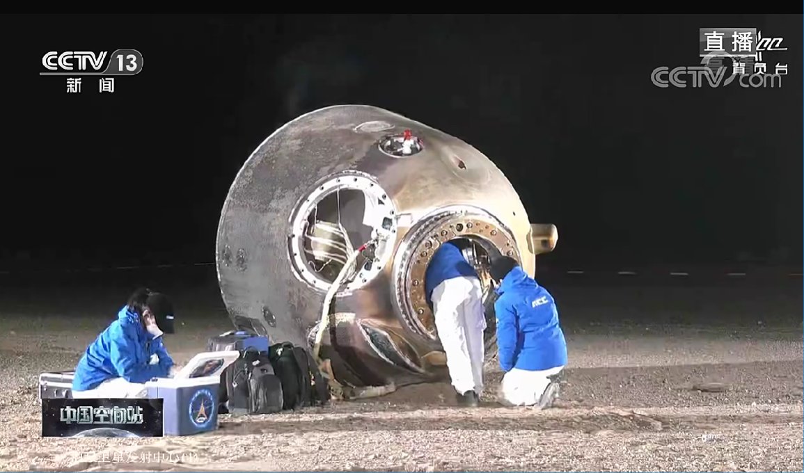 Devlet televizyonu CCTV’nin haberine göre, Çın Dong, Liu Yang ve Cai Şucı’yı taşıyan Şıncou-14 uzay kapsülü, akşam saatlerinde Gobi Çölü’ndeki Donfıng sahasına indi.
