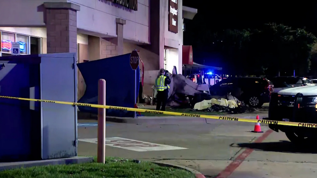 Dallas kentinin Plano semtindeki alışveriş merkezinin önüne düşen uçak çevredeki bazı dükkânlarda küçük çaplı hasara yol açarken, park halindeki bir araç da yandı.