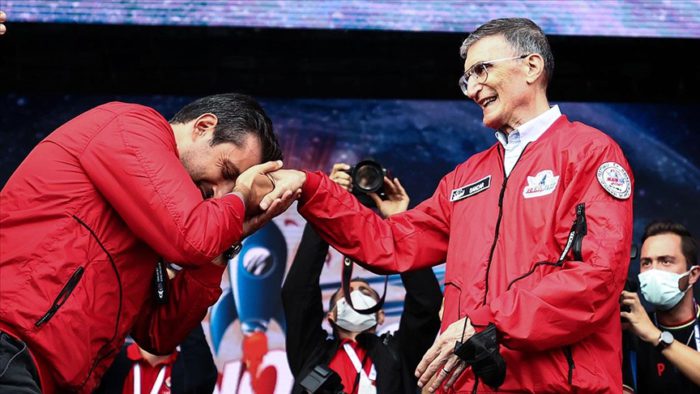 Konuşmanın ardından TEKNOFEST Yönetim Kurulu Başkanı Selçuk Bayraktar, Prof. Dr. Aziz Sancar’ın elini öperek şükranlarını iletti. Ardından, Sancar ve beraberindekiler sahneden katılımcıları selamladı.