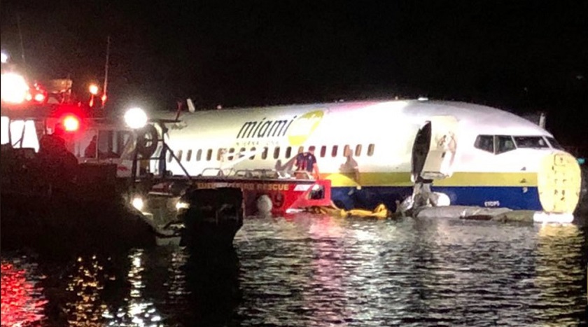 Boeing 737-800, Amerika’da pistte duramayınca nehre düştü. Küba’daki Guantamo Üssü’nden gelen uçaktaki 143 yolcudan 21’i yaralandı.