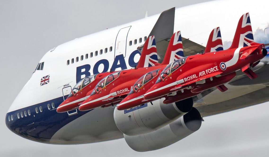 Royal İnternational Air Tattoo havacılık festivalinde British Airways 100. kuruluş yılı kutlamaları için özel bir uçuş gerçekleştirdi. Şirketin öncüsü British Overseas Airways Corporation’ın (BOAC) renklerine boyanan Boeing 747 uçağının, İngiliz Kraliyet Hava Kuvvetlerinin akrobasi timi Red Arrows ile birlikte gerçekleştirdiği uçuş büyük ilgi topladı.