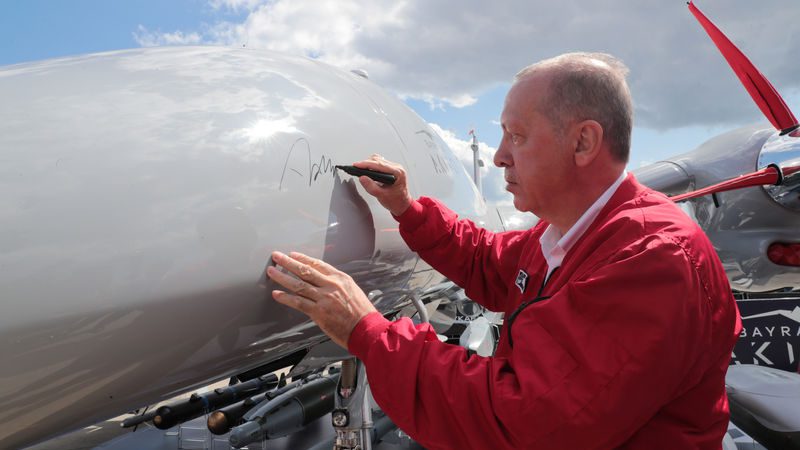 Teknofest İstanbul’u ziyaret eden Cumhurbaşkanı Recep Tayyip Erdoğan, Baykar Savunma tarafından geliştirilen Akıncı silahlı insansız hava aracını (SİHA) inceleyip burun kısmına imzasını attı.
