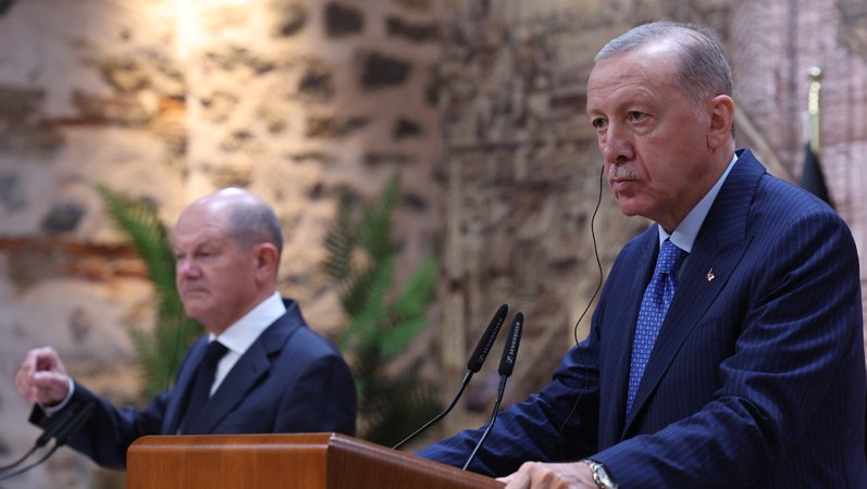 Olaf Scholz ve Recep Tayyip Erdoğan’ın Türk-Alman ilişkilerinde son dönemde yaşanan iyimser havanın, Orta Doğu ihtilafı konusundaki derin görüş ayrılıkları nedeniyle bozulmasına izin vermeme kararlılığı da dahil olmak üzere pek çok konuda mutabık kaldığı aktarıldı.