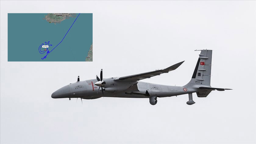 Radar görüntülerine yansıyan uçuş, ilgi gördü. GOLGE63 çağrı işaretini kullanan İHA, Kuzey Kıbrıs’ın doğusundan Akdeniz’in uluslararası hava sahasına girdi. İsrail açıklarına gelen İHA, keşif görevini yaparken, Türk bayrağı rotası izledi.