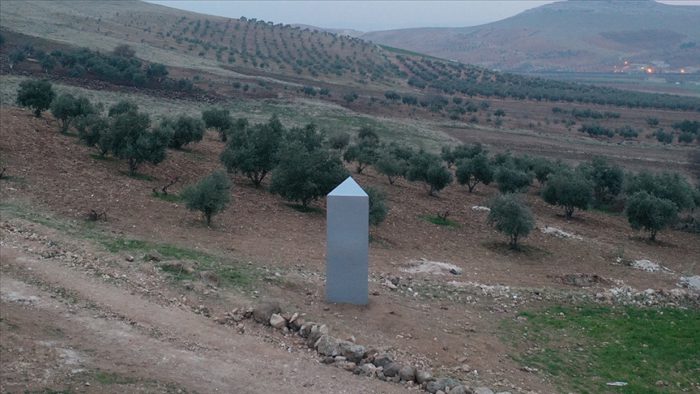 Yaklaşık 3 metre yüksekliğinde, 1 metre genişliğinde, üzerinde Göktürk alfabesiyle “Gökyüzüne bak, Ay’ı gör” ifadesinin yazılı olduğu metal blokun kim ya da kimler tarafından hangi amaçla dikildiği belirlenememişti.