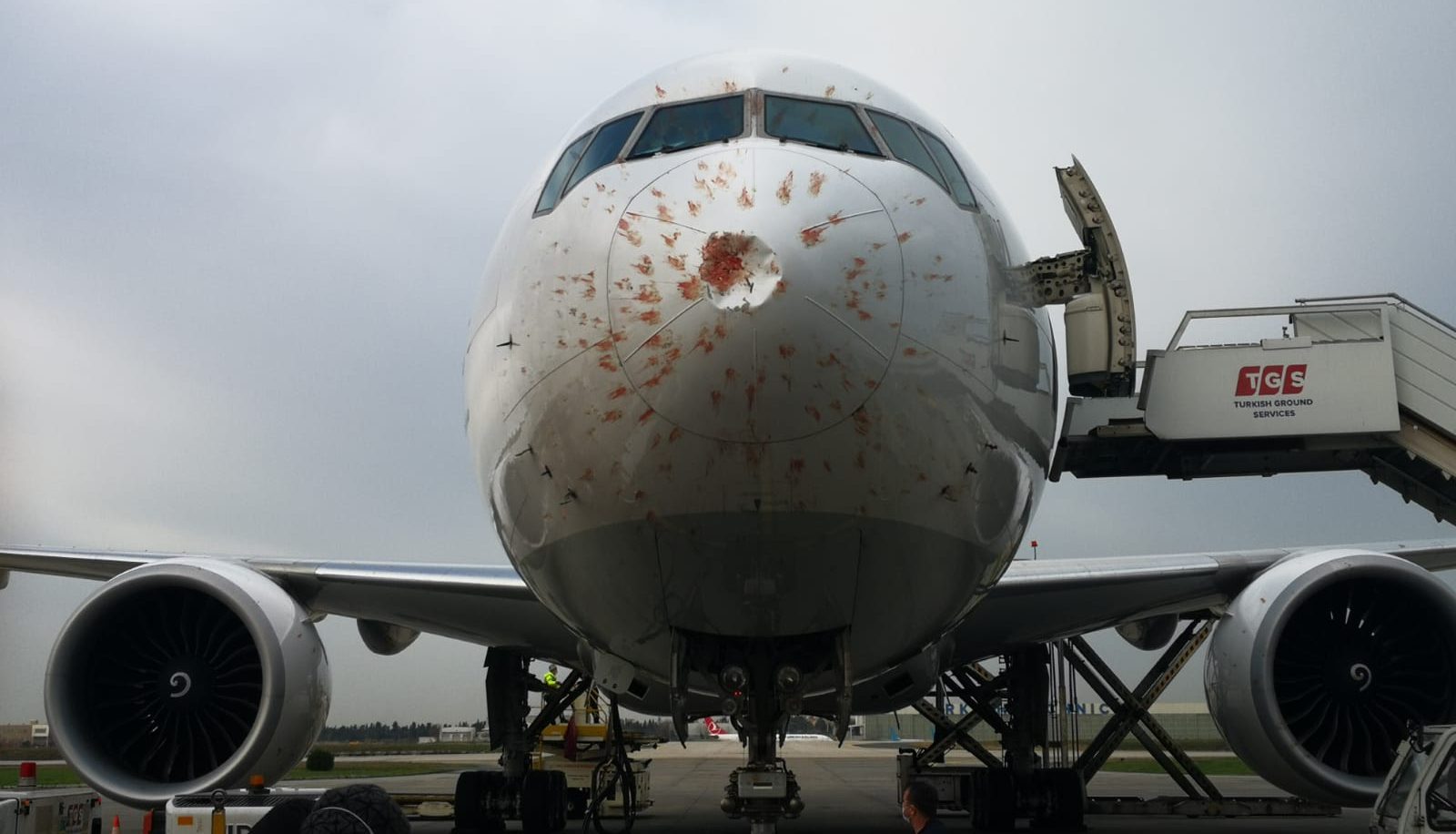 Hareket eden bir hava aracı ile havada uçan bir kuş veya kuş sürüsünün arasındaki temas veya çarpışma kuş çarpması olarak adlandırılmaktadır. Peki “Kuş çarpmaları neden ciddi hasarlara sebebiyet vermektedir?” sorusuna cevap vermeye çalışalım. Bilindiği üzere karşılıklı çarpışmalarda çarpma hızı oldukça yüksek değerlere çıkmaktadır. Bu sebeple çarpışmalar tahmin edilemeyecek kadar büyük hasarlara yol açmakta, hatta bunun da ötesinde hava aracının düşmesine bile sebep olmaktadır. Ayrıca farklı kuş ağırlıkları da hava araçlarında farklı etkilere neden olabilmektedir. Örneğin, 1 kg ağırlığında bir kuş 350 km/h hızla giden bir uçağa çarptığında çarpma bölgesinde yaklaşık 9 ton civarında bölgesel bir kuvvet oluşturabilmektedir. Resim 1’de küçük olarak nitelendirilen bir kuş türünün motor pervanesinde oluşturduğu hasar görülmektedir. Motorda oluşan bu küçük sayılabilecek hasarlar bile motor performansını olumsuz etkilemekte ve hatta motorların devre dışı kalmalarına sebebiyet vermektedir.