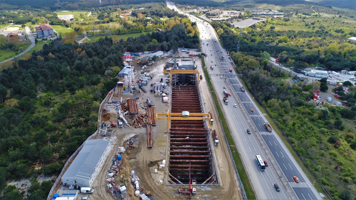 Ulaştırma ve Altyapı Bakanlığı tarafından İstanbul Havalimanı’na şehir merkezinden ulaşımı sağlamak için inşa edilen metro hattı 1. etabında çalışmalar hızla devam ediyor. Metro hattında yer alan İhsaniye, Işıklar Otogar, Göktürk, Kemarburgaz istasyonlarında hummalı çalışmalar göze çarparken, gelinen son nokta havadan drone ile görüntülendi.
