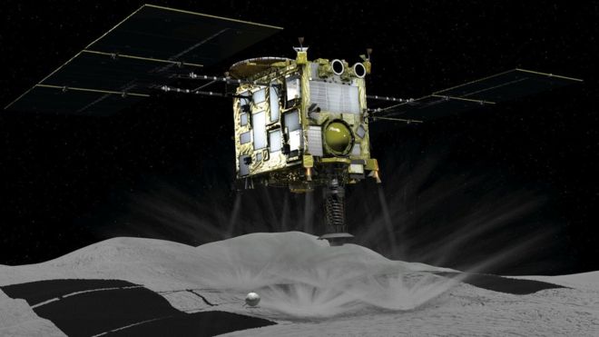 Japonya’nın, Güneş Sistemi’nin oluşumunu incelemek için uzaya gönderdiği Hayabusa-2 uzay aracı, 280 milyon kilometre uzaklıktaki Ryugu göktaşına indi.