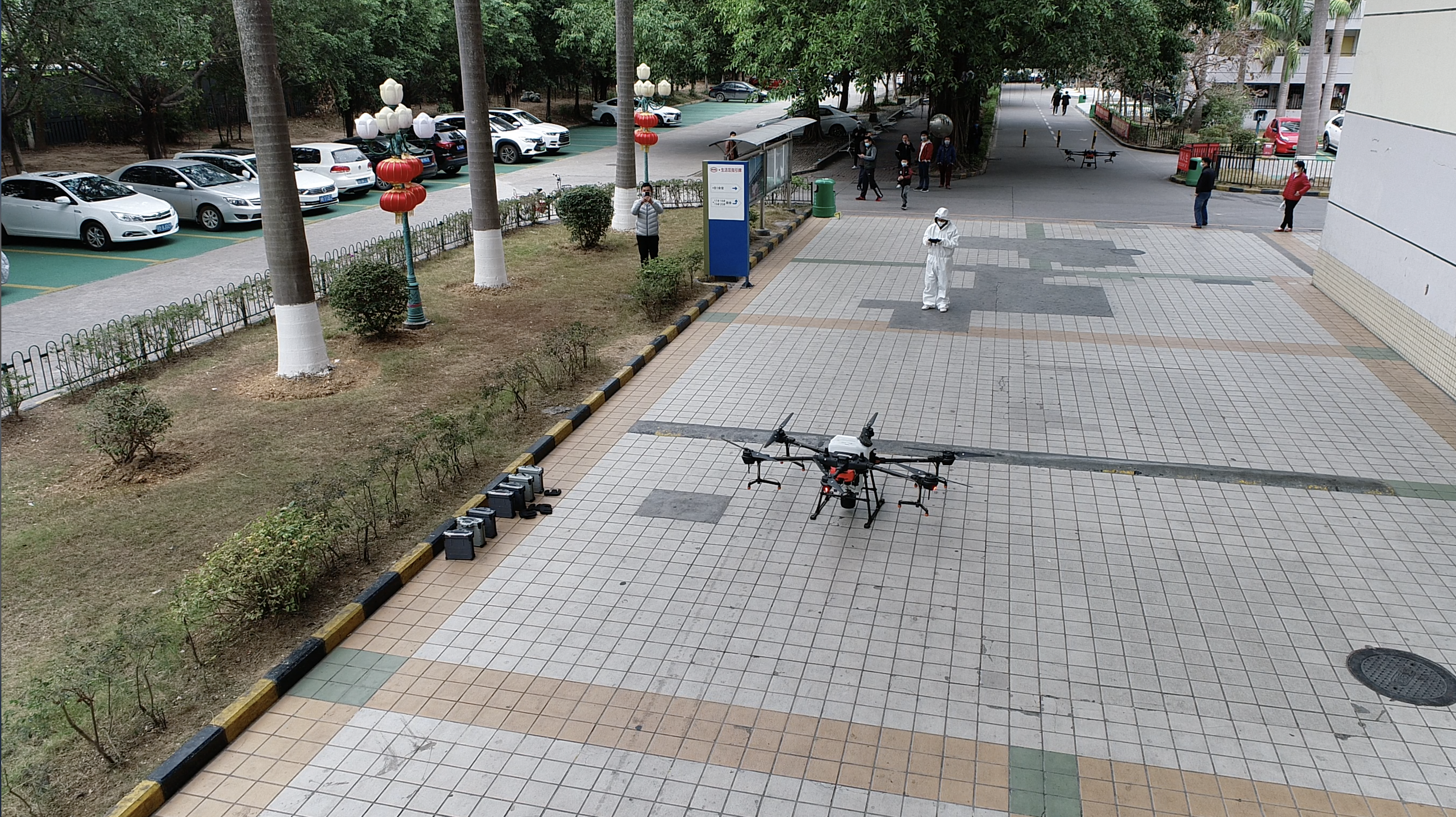 Salgınla mücadele amacıyla; Tarımsal Teknoloji kuruluşuyla birlikte çalışan drone üreticisi DJI, 1,5 milyon dolar ödenek ayırdı. Araştırma ve test süreçleri sonrası havadan klor veya etil alkol bazlı dezenfektan püskürtmek için uygun yöntemler geliştirildi. Bu sayede dronlar yardımıyla Çin’de halka açık alanlarda dezenfekte işlemi yapılarak virüsle mücadelede önemli bir adım atıldı.