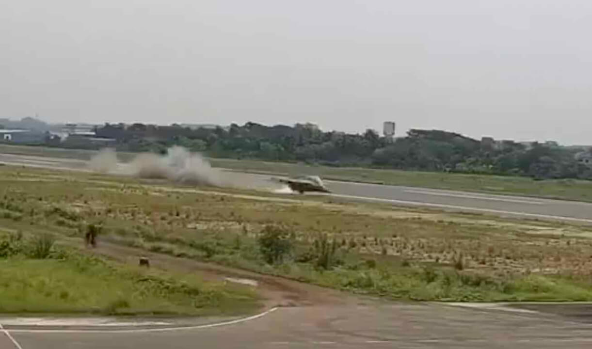 Bangladeş Hava Kuvvetleri’ne ait bir Yak-130 tipi eğitim uçağı, manevra sırasında dengesizliğe girerek pistle temas etti. Uçağın gövdesinin pistte temas etmesiyle havalanan uçak bir süre havada kaldı.