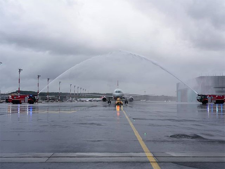 Rus şirket, İstanbul Havalimanı’na iniş yaptıktan sonra su takı ile karşılandı.