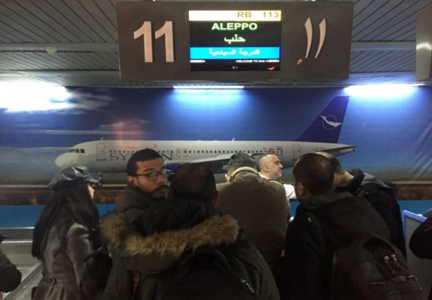 Şam ile Halep arasında sekiz yıl sonra ilk sivil uçuş yapıldı. Syrian Airlines tarafından gerçekleştirilen uçuşta yetkililerle gazeteciler yer aldı.