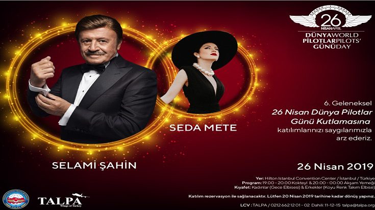 TALPA’dan yapılan açıklamada, “26 Nisan Pilotlar Günü Hilton Convention Center’da 19:00-00:30 saatleri arasında gerçekleşecektir. Selami Şahin ve Seda Mete’nin sahne alacağı gecede sizleri de aramızda görmekten büyük onur duyacağız” ifadelerine yer verildi.
