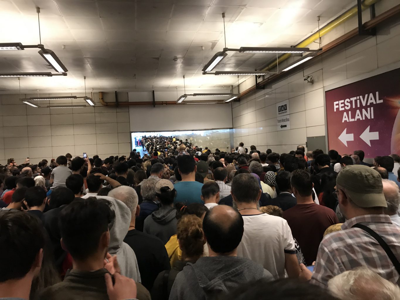 Haftasonuna girilmesi itibari ile Teknofest’te yoğunluğun hat safhaya ulaşması ile beraber metroda güvenliklerin olası izdiham yaşanmasını önlemek amacıyla yolcuları 5 dakika ara ile girişlere yönlendiriyordu. Çocuklu aileler için de girişlerde özel önlemler alınıyordu.