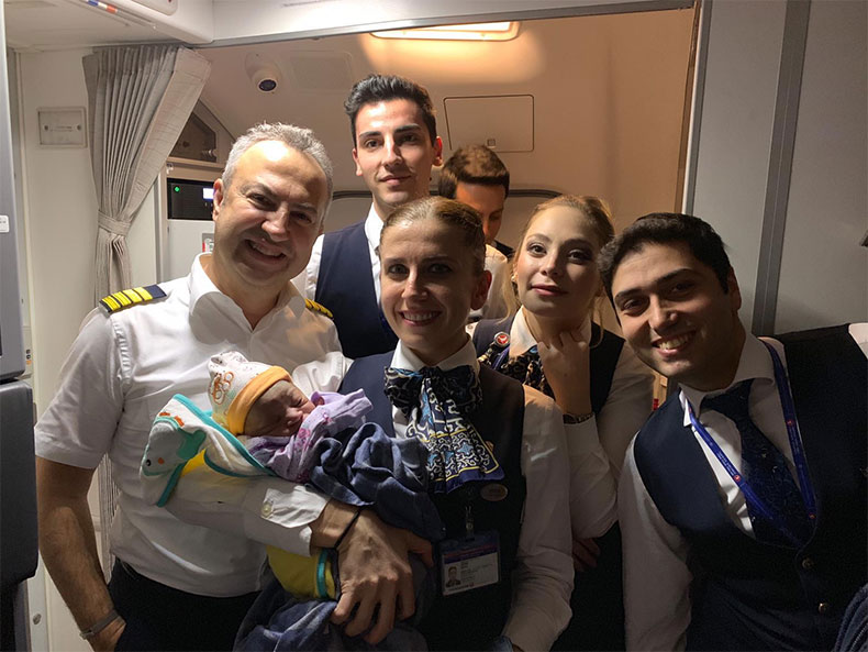 Doğumun başlaması sonrasında kabin ekipleri aldıkları eğitimle hamile yolcunun doktor olan eşi ile birlikte doğumun gerçekleşmesini sağladı. 21 yaşındaki yolcu Türkiye saati ile 05:25’te gökyüzünde sağlıklı bir erkek çocuğunu, 13 bin metrede dünyaya getirdi. Türk Hava Yolları’nın Boeing 737 Max-8 tipi uçağında hayata gözlerini açan bebeğin ve annenin durumunun iyi olduğu öğrenildi. Aile İstanbul’a indikten sonra THY’nin TK79 seferi ile San Francisco’ya uçmayı planlıyordu.