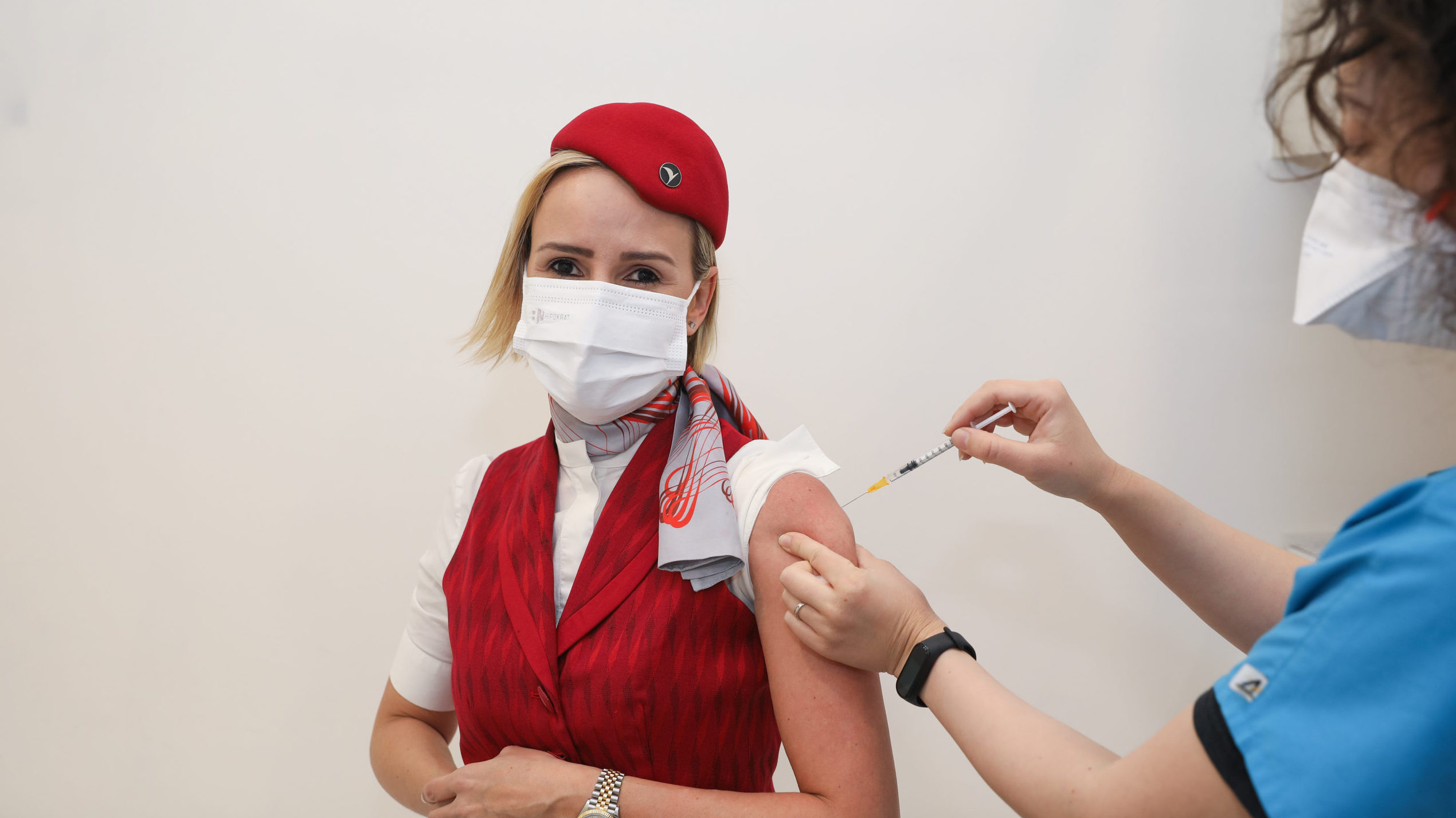 Bayrak taşıyıcı havayolunun pilot, kabin memuru ve load master (yükleme uzmanları) çalışanları öncelikli meslek gurubu kapsamında Kovid-19 aşılarını olmaya başladı.