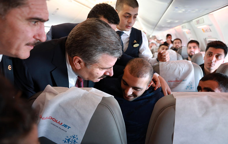 Bir dizi ziyaret için Ağrı’ya giden Sağlık Bakanı Fahrettin Koca, uçakta rahatsızlanan bir yolcuya müdahalede bulundu. Yoğun baş ağrısı ve göz kararması şikayetiyle uçuş görevlilerinden yardım isteyen Mehmet Emin Çedrez isimli yolcu için uçak içinde anons yapıldı. Yolcular arasında doktor olup olmadığı soruldu. Anons üzerine Bakan Koca yolcunun yanına geçti. Çedrez’i muayene eden, nabzını kontrol eden ve sorular soran Koca, yolcunun durumu düzelene kadar yanından ayrılmadı. Baş ağrısı ve uçaktaki basınç nedeniyle fenalaştığı anlaşılan yolcunun durumu iyiye gitti.