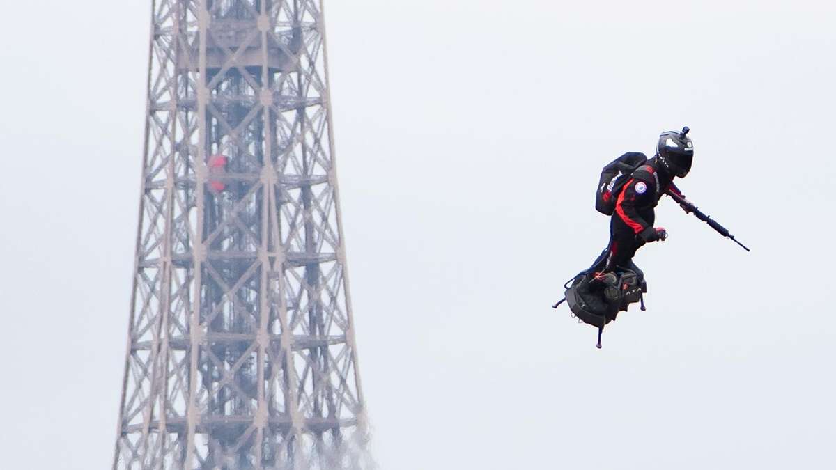 Fransız ordusunda yedek asker olan Franky Zapata, Fransa Cumhurbaşkanı Emmanuel Macron, Almanya Başbakanı Angela Merkel ve diğer Avrupalı liderlerin katıldığı törende elinde bir tüfekle uçmuştu.